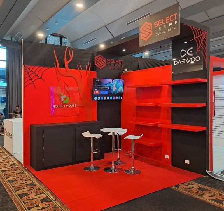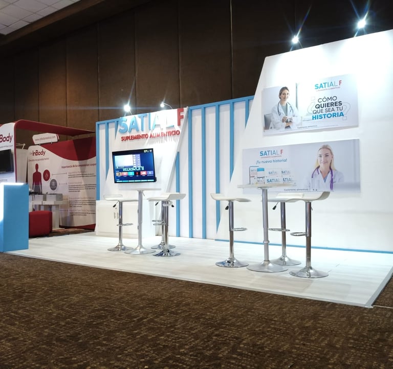 Creamos stands personalizados para resaltar la identidad de tu marca en cualquier evento. Servicio de montaje y desmontaje